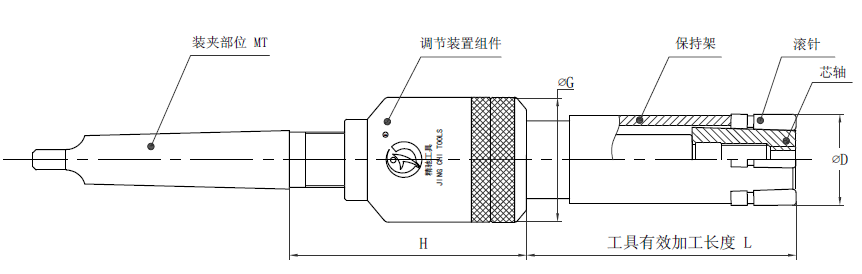 注:孔徑Φ26-68的滾壓刀有效加工長度從B檔開始柄部標配MT3,如需其他型號規格需定做。加工孔徑Φ40以上的滾壓刀,由于調節組件的外徑比加工孔徑小,可通過加長柄部尺寸的方法增加加工長度。