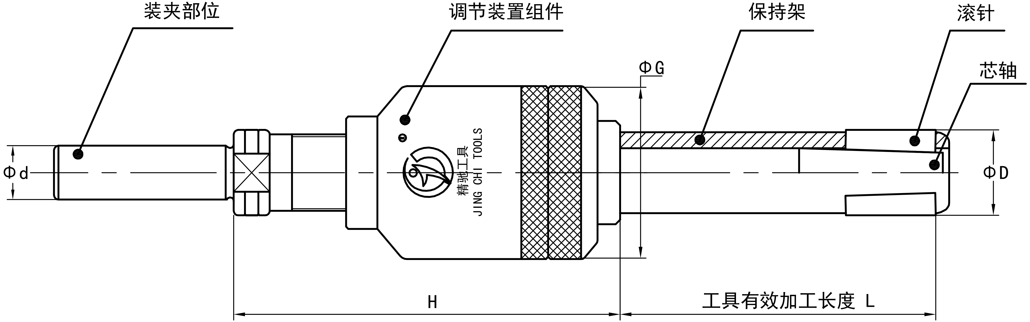 注:孔徑Φ26-68的滾壓刀有效加工長度從B檔開始柄部標配MT3,如需其他型號規格需定做。加工孔徑Φ40以上的滾壓刀,由于調節組件的外徑比加工孔徑小,可通過加長柄部尺寸的方法增加加工長度。